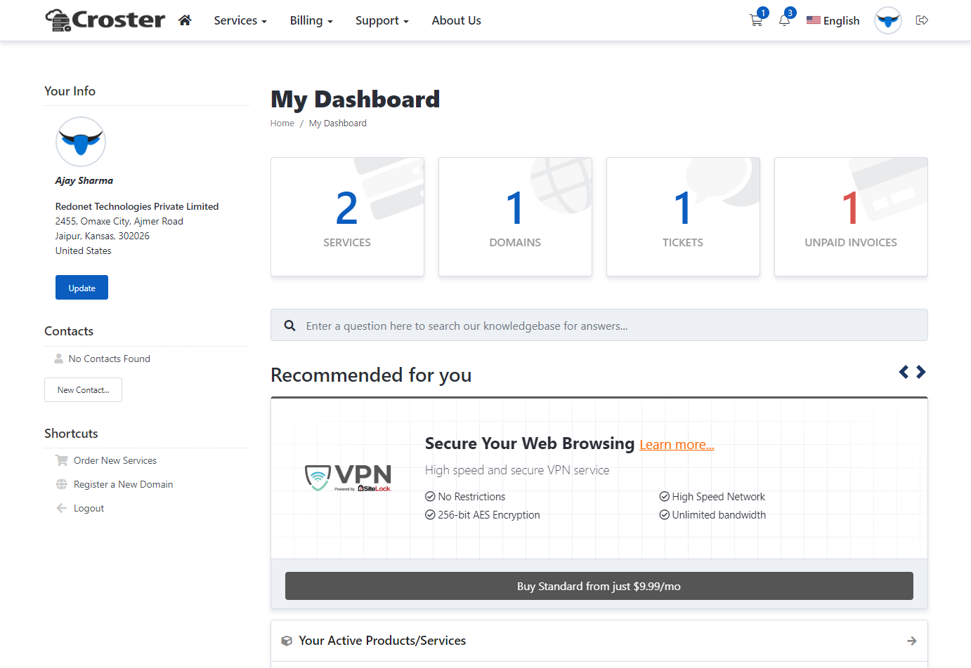Στη 19CLOUDS δίνουμε ιδιαίτερη έμφαση στη διαφάνεια. Μεσω του control panel, μπορείτε να ενημερώνεστε αλλά και να διαχειρίζεστε, όλες τις υπηρεσίες που διατηρείτε στην εταιρεία μας.