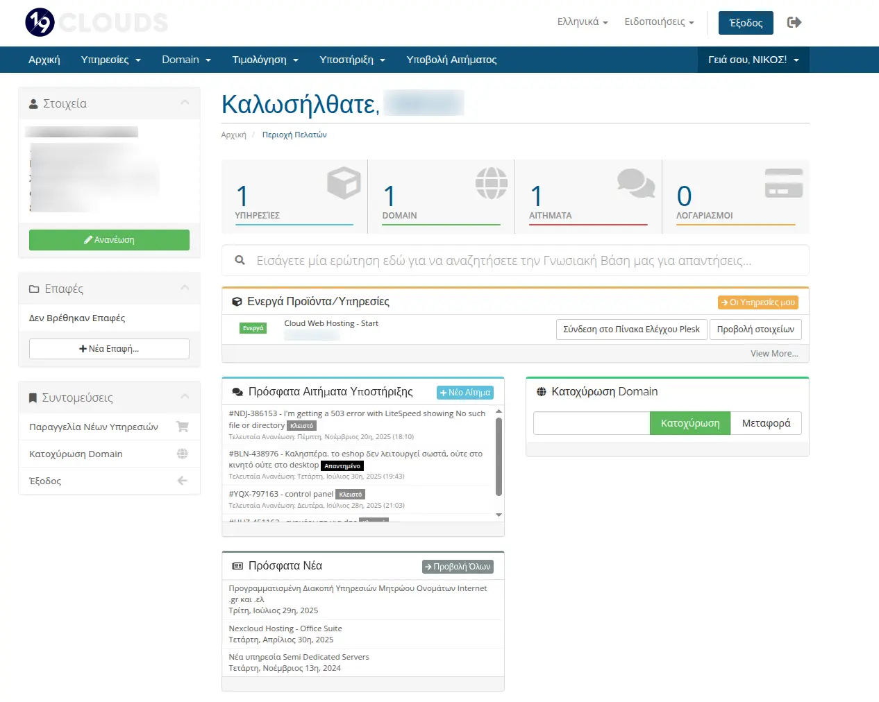 Στη 19CLOUDS δίνουμε ιδιαίτερη έμφαση στη διαφάνεια. Μεσω του control panel, μπορείτε να ενημερώνεστε αλλά και να διαχειρίζεστε, όλες τις υπηρεσίες που διατηρείτε στην εταιρεία μας.